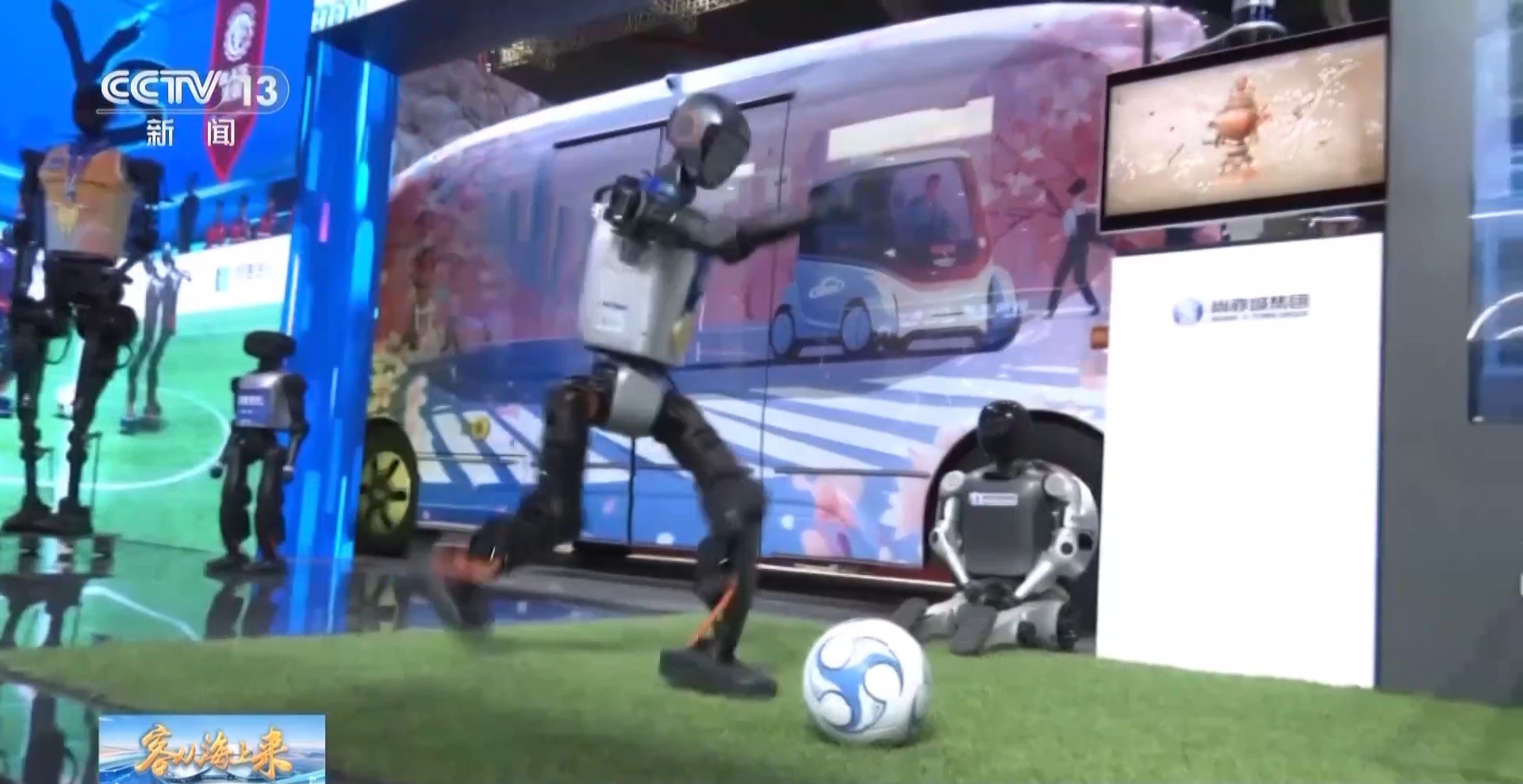 央视松湾记者:看完机器人跳舞踢球后,可以在这辆自动驾驶小巴上休息一下,感受未来的出行新体验。这辆小巴有一个数字代表。当车辆行驶时,它会向乘客实时宣布车站,告知他们下一步要去哪里。同时,车上还配备了娱乐系统,可以唱歌、看电影、甚至喝饮料。由机器人提供服务。